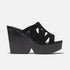 Upper: black bead embroidered fabric / Lining: black goatskin / Sole: black waxed stacked leather platform, arizona sole, black edge